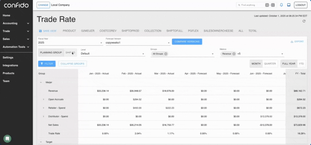 We’ve added the ability to pivot the Ship-To Net Sales View by Planning Group — giving you new ways to compare consumption and forecasted revenue side by side.