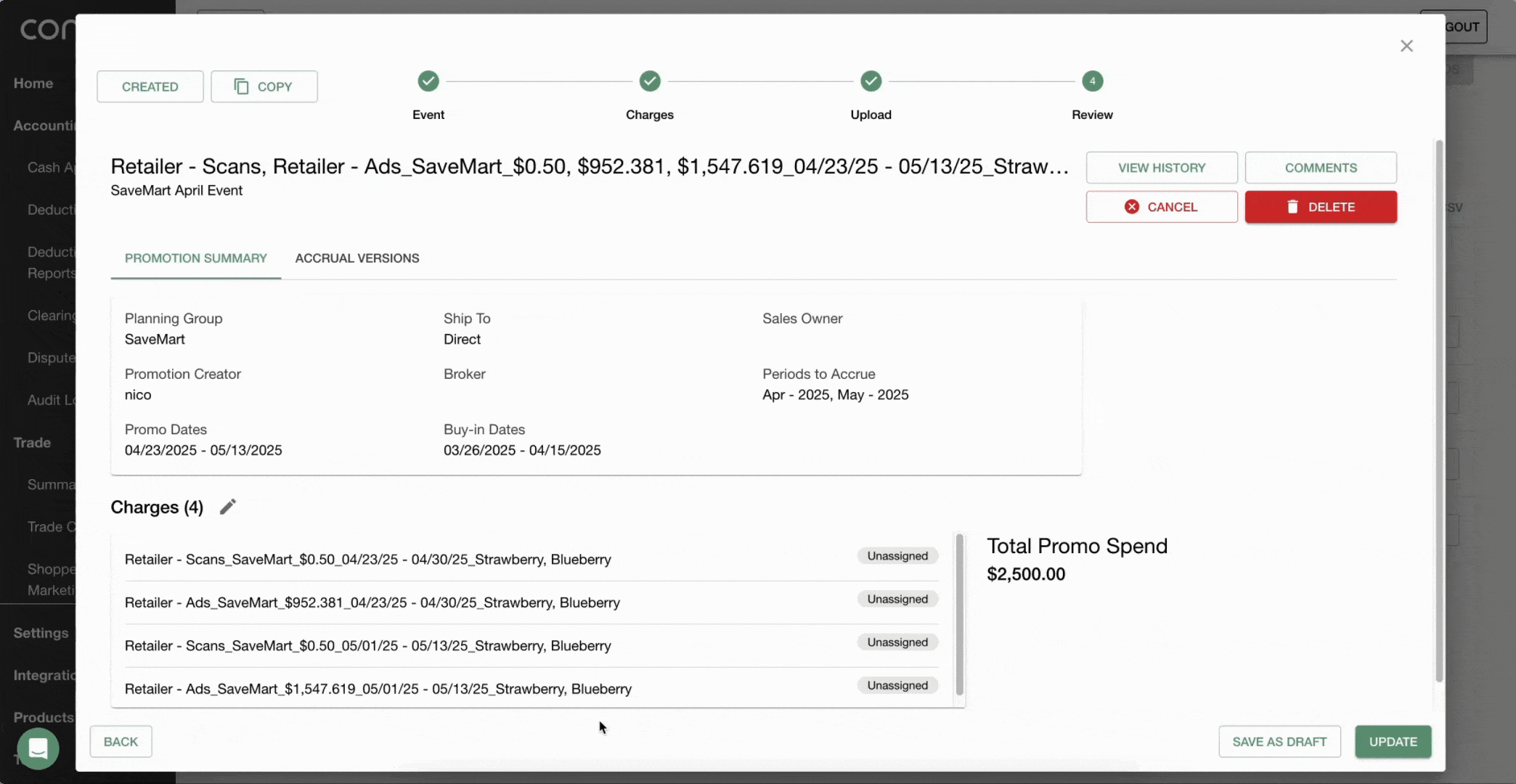 When a promotion is tagged to a deduction, all related supporting documents now appear directly in the Deductions view, enabling:
